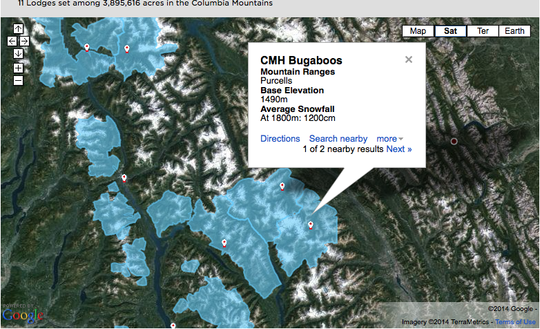 Am 29.3.2014 gehts weiter in die Lodge «Bugaboos». Diese Lodge liegt in den «Columbia Mountains»
